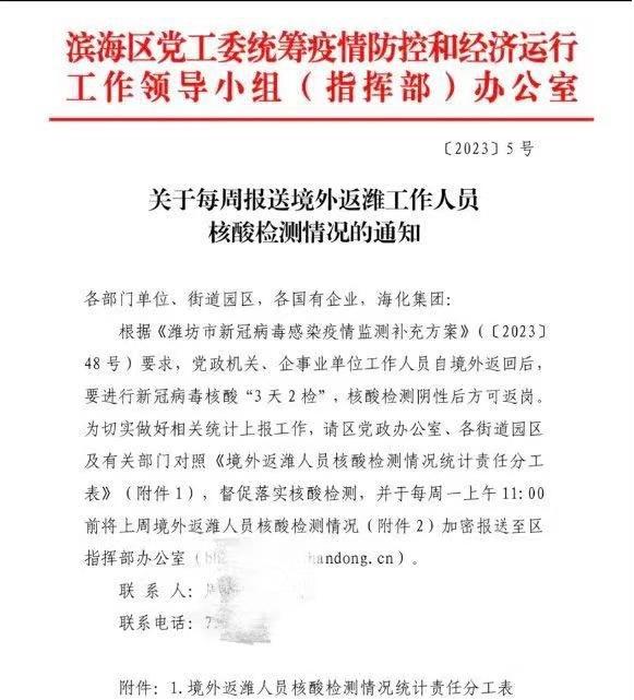 山東濰坊市最近發布的一則通知引起了廣泛關注。通知要求黨政機關、企事業單位工作人員自境外返回后,需要進行新冠病毒核酸檢測,并且需要連續檢測三天,每天檢測兩次,只有核酸檢測結果為陰性后才能夠返崗工作。