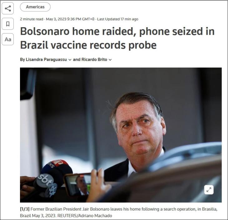 據路透社和彭博社等媒體報道,巴西警方于5月3日上午突擊搜查了前任總統、極右翼領導人博索納羅的住所,并沒收了他的手機。博索納羅目前因涉嫌偽造疫苗接種證明而接受調查。