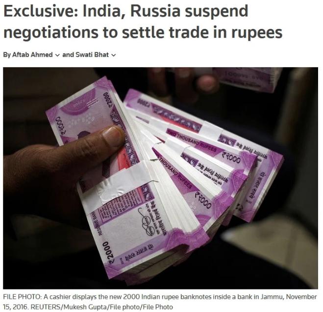 據路透社4日報道,印度和俄羅斯已經暫停就用盧比結算雙邊貿易的談判,俄羅斯方面認為持有盧比“不劃算”,希望用人民幣等貨幣進行支付。這對印度來說是一個重大挫折,因為印度一直希望建立永久性的盧比支付機制來降低貨幣兌換成本。報道稱,由于貿易逆差對俄羅斯有利,莫斯科認為建立盧比結算機制會導致俄方面臨每年超過400億美元的盧比盈余,而持有如此大量的盧比并不劃算。另一方面,印度官員則透露俄羅斯不愿意持有盧比,希望以人民幣或其他貨幣支付雙邊貿易。