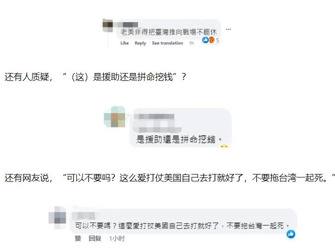這一消息迅速引起臺(tái)媒和島內(nèi)網(wǎng)友的關(guān)注,有人表達(dá)憤怒,稱"老美非得把臺(tái)灣推向戰(zhàn)場不能休"。還有人質(zhì)疑這是否援助,還是單純的剝削。