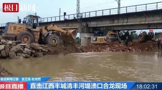 據(jù)5月6日央視新聞報道,江西宜春市豐城市麗村鎮(zhèn)清豐河堤下江段河堤潰口約30米,導(dǎo)致下游四個村莊被淹,約300人受災(zāi)。目前,當?shù)馗鞑块T正在緊急救援,封堵潰口。極目新聞記者在7日下午6時許到達現(xiàn)場,發(fā)現(xiàn)施工機械從潰口處兩邊推進,歷經(jīng)36小時后,潰口已成功合龍。