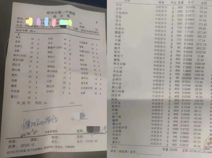 5月6日,一張中藥單在鄭州市引發了廣泛的討論和關注。據報道,鄭州市民李先生曬出了他在某醫院開出的一張中藥處方,總價高達23740.42元。李先生對藥價存疑,曾嘗試撥打12315消費者投訴舉報專線電話反饋問題,但回復卻只是“明碼標價”。