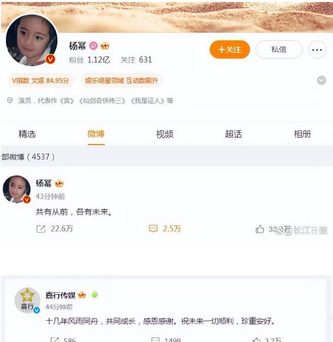隨后,嘉行傳媒也發(fā)表了一篇文章,感謝與楊冪共同度過的十幾年,并祝愿她未來一切順利。嘉行傳媒是一家成立于2007年的影視制作公司,主要從事廣播、電視、電影和錄音制作業(yè)務(wù)。