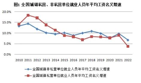 據國家統計局最新數據,2022年全國城鎮私營單位、非私營單位就業人員年平均工資分別為114029元、65237元,同比增長6.7%、3.7%,創下10年來最低紀錄。扣除物價因素后,2022年,非私營單位、私營單位的就業人員年平均工資實際增速分別為4.6%、1.7%。
