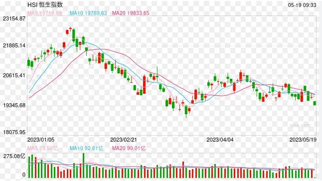 金融界5月19日報道,今日港股市場以低開為主,恒生指數(shù)下跌0.97%,報19535.49點,恒生科技指數(shù)下跌1.25%,報3868.3點,國企指數(shù)下跌1.11%,報6641.23點,紅籌指數(shù)下跌0.18%,報3970.72點。