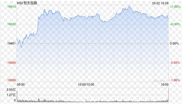 5月22日,港股市場在早盤的拉升之后經歷了一段震蕩行情。截至收盤,恒生指數上漲了1.17%,報收于19678.17點,恒生科技指數上漲了2.14%,報收于3903.58點,國企指數上漲了1.51%,報收于6693.64點,紅籌指數上漲了0.85%,報收于3980.9點。