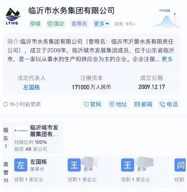 記者查詢天眼查發(fā)現(xiàn),臨沂市水務集團的法定代表人為左國棟,臨沂城市發(fā)展集團是其百分之百控股的企業(yè)。
