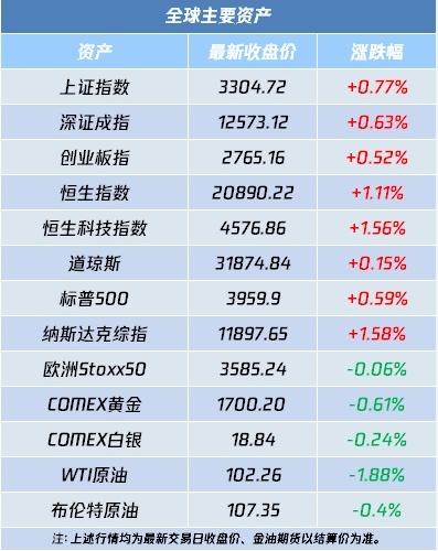 另外,美股今日休市。美元指數出現反彈,接近兩月高位。布倫特7月原油期貨結算價收漲0.15%,報77.07美元/桶,連續兩日反彈,接近三周高位。
