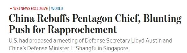 五角大樓在給《華爾街日報》的聲明中表示:“中國在一夜之間通知美國,他們拒絕了我們五月初提出的奧斯汀部長與中國國防部長李尚福在新加坡會面的請求。”聲明還表示:“國防部堅信,保持華盛頓和北京之間開放的軍事溝通渠道對于確保競爭不會演變成沖突非常重要。”