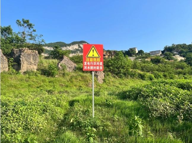 事故發生后,相關部門在凹河左岸立起警示牌。圖/九派新聞陳冬艷