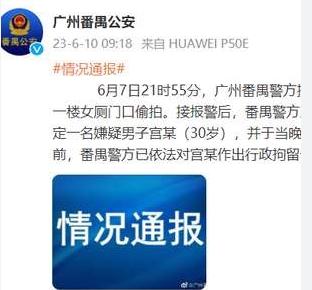 根據最新消息,廣州番禺警方在6月7日21時55分接到一起舉報,稱一名男子在大石街某廣場一樓女廁門口進行偷拍活動。該舉報引起了警方的高度重視,立即派員趕赴現場處置。經過迅速而有力的調查,民警成功鎖定了一個嫌疑男子,名叫宮某,年齡為30歲。