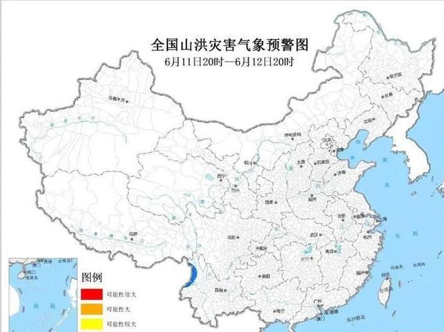 同時,自然資源部與中國氣象局聯合發布了地質災害氣象風險預警。預計6月11日20時至6月12日20時,云南西北部、西藏東南部局部地區的氣象風險較高,居民在降水較強時應特別注意防范由此引發的地質災害,尤其是地質災害隱患點附近區域。