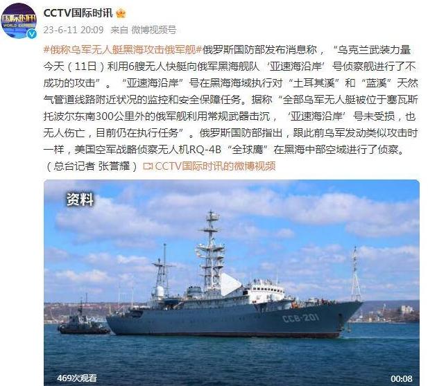 俄羅斯國防部發(fā)布消息稱,烏克蘭武裝力量在11日利用6艘無人快艇對俄羅斯黑海艦隊的“亞速海沿岸”號偵察艦進行了攻擊,但未能成功。
