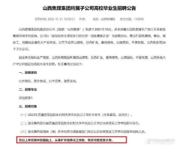 最近,一位網友向南國早報反映,在山西焦煤集團有限責任公司官網公布的《山西焦煤集團所屬子公司高校畢業生招聘擬錄用人員公示》中,出現了兩名80后的大專畢業生,這在眾多90后和00后的應屆畢業生中顯得不同尋常。