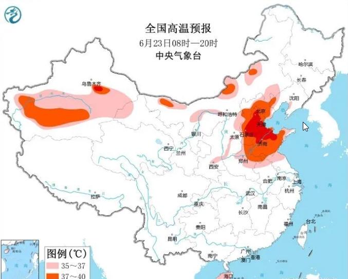 據中央氣象臺消息,6月23日和24日兩天,北京、天津、河北以及山東的部分地區還會有40℃左右的高溫,未來25、26日高溫的范圍和強度縮減,27日至30日再度發展起來。
