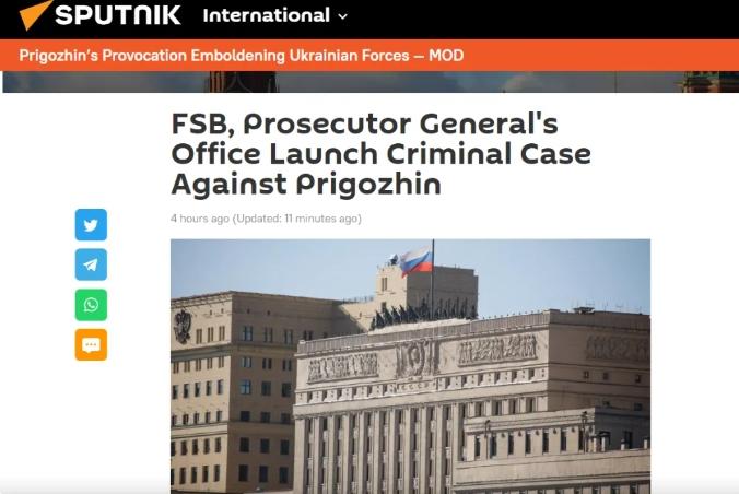 俄羅斯總檢察長辦公室也確認,根據俄羅斯聯邦刑法第279條,對普里戈任展開了涉嫌組織武裝叛亂的刑事案件調查。他的行為將得到適當的法律評估,這一罪行可處以12至20年的監禁。