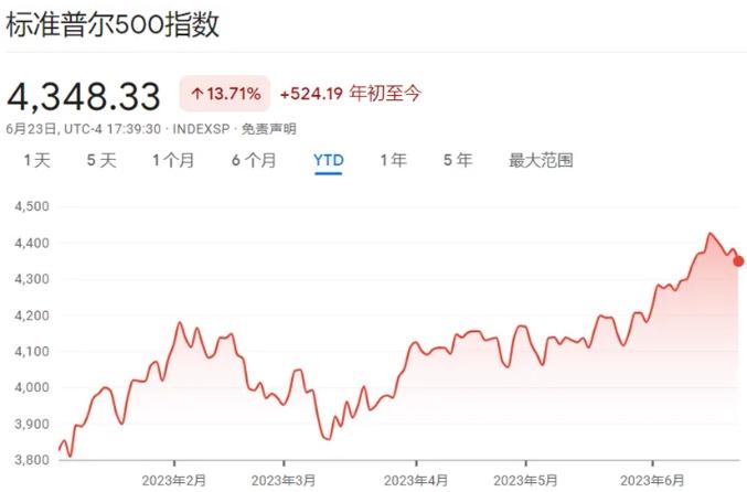 截至隔夜美股收盤,標普500指數跌0.77%,今年以來已上漲13.71%,報4348.33點。