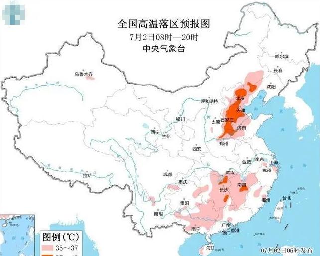 中央氣象臺發布高溫黃色預警:北京、天津、河北、河南北部、山東西部、內蒙古東南部、遼寧西部以及湖北南部、湖南中東部、江西、廣西、廣東西北部、福建北部等地高溫35℃以上