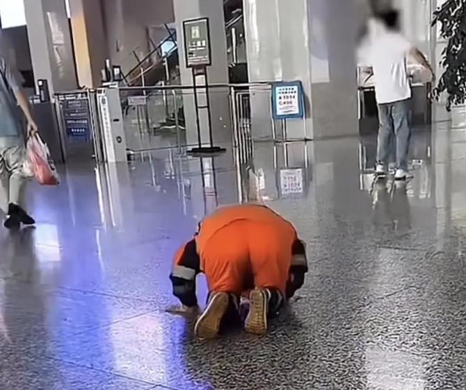 據視頻顯示,當時火車站大廳內,一位身著橙色工作服的保潔阿姨突然跪地下跪,連磕三個頭,不停地說著:“對不起。”而一名白衣男子見狀后匆匆離開了現場。這一幕引起了圍觀者的熱議和拍攝,視頻迅速在網絡傳播,引發了廣泛的討論和關注。
