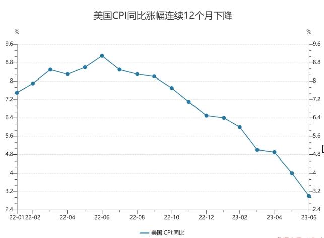 根據美國勞工統計局于7月12日發布的數據顯示,美國6月消費者物價指數(CPI)同比增長3%,略低于市場預期的3.1%,前值為4%。這是自2022年6月以來連續12個月下降的最小增幅,也是自2021年3月以來的最低漲幅。這一數據的公布導致美元指數回落,離岸人民幣對美元匯率走高,一度逼近7.16關口。