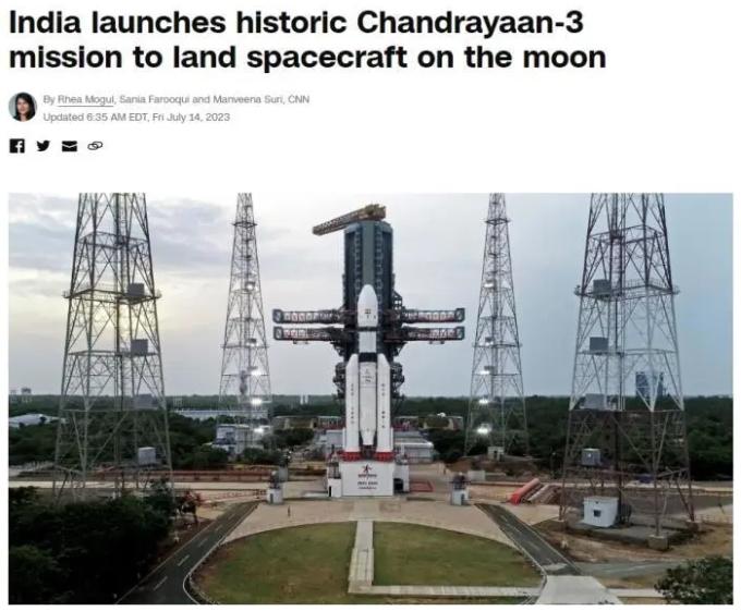 報道指出,當(dāng)?shù)貢r間約14:35(北京時間約17:05),搭載軌道器、著陸器和月球車的“月船3號”從印度安得拉邦斯里哈里科塔(Sriharikota)航天中心發(fā)射升空。著陸器計劃在8月23日至24日抵達月球,并在月球表面展開為期14天的科學(xué)活動。