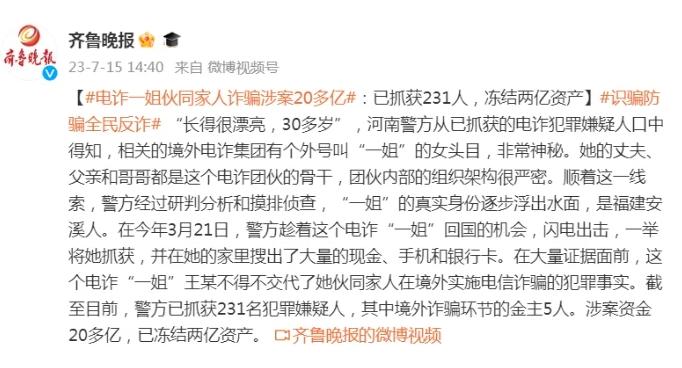 面對確鑿的證據,電詐“一姐”王某不得不承認她與家人合謀在境外實施電信詐騙的犯罪事實。目前,警方已抓獲了231名犯罪嫌疑人,其中涉及境外詐騙環節的金主有5人。涉案資金超過20億,已經成功凍結了2億的資產。