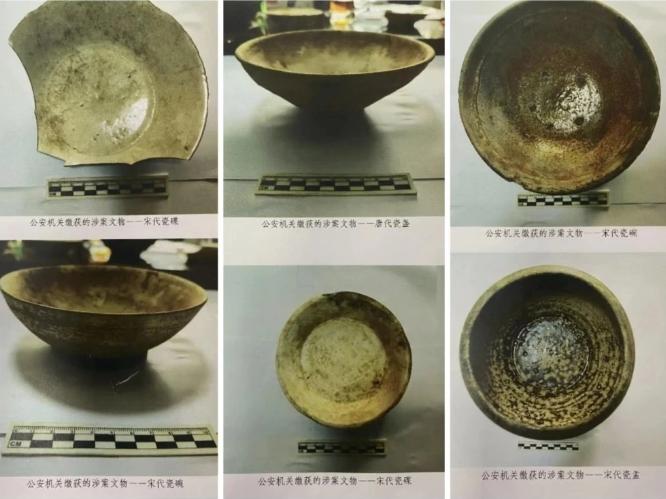 在島上,三人先后挖掘了兩處古墓,其中一處是鋪有青磚的墓葬,但挖掘無果,便離開了。另一處古墓則有一副木棺,三人將其挖出并打開,曹某又試圖尋找古董,但未獲得所愿。最終,他們共撿到六件類似碗狀器具,其中一件為晚唐五代時期瓷器,其余五件為兩宋時期瓷器。