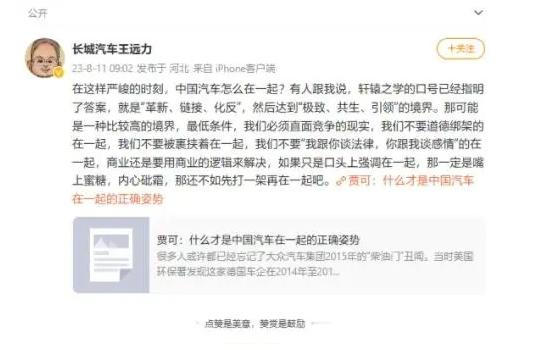 然而,長城汽車CTO對比亞迪的宣傳口號提出了不同的聲音,將其視為“道德綁架”。他認為宣傳應該更加客觀和理性,不應將道德因素過于渲染。他表示,汽車作為一種交通工具和消費品,其價值在于滿足用戶需求和提供優質產品和服務,而不應通過道德判斷來衡量。長城CTO的觀點引發一些人的共鳴,認為宣傳應更加客觀和理性,避免過度強調情感成分。