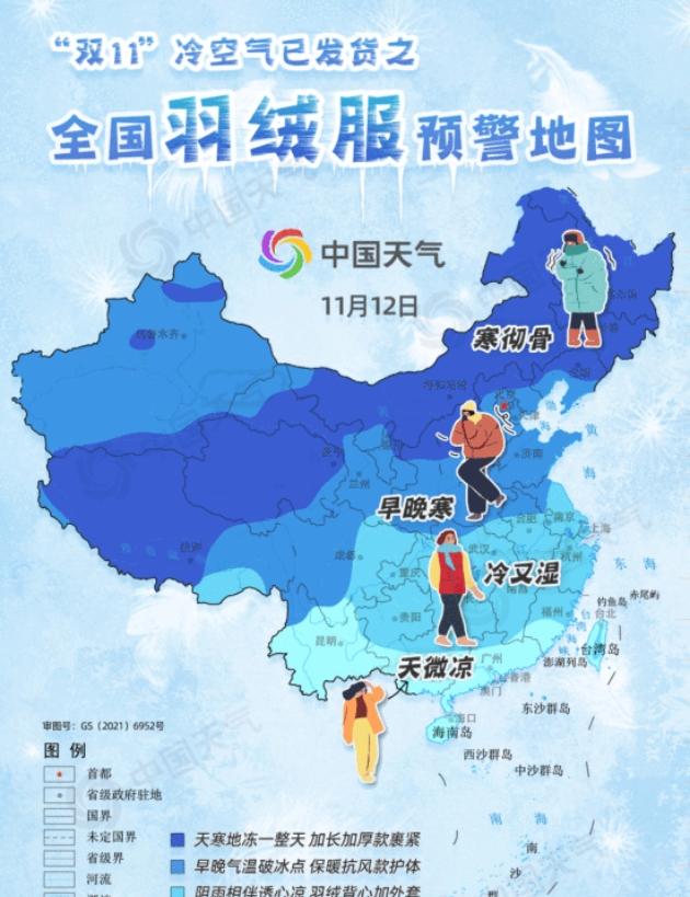 雙十一購物狂歡已經到來,但與此同時,一股強冷空氣也已經發貨,將席卷全國多地。中國天氣網發布了全國羽絨服預警地圖,提醒哪些地方將會面臨嚴寒,需要及時穿上保暖的羽絨服。