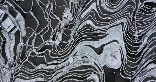 這樣的雪后景象讓人聯(lián)想到“大地的指紋”,每一片梯田都是大自然的獨特印記。雪花落在梯田上,勾勒出如同指紋一般的圖案,展現(xiàn)出大地的神秘之美。