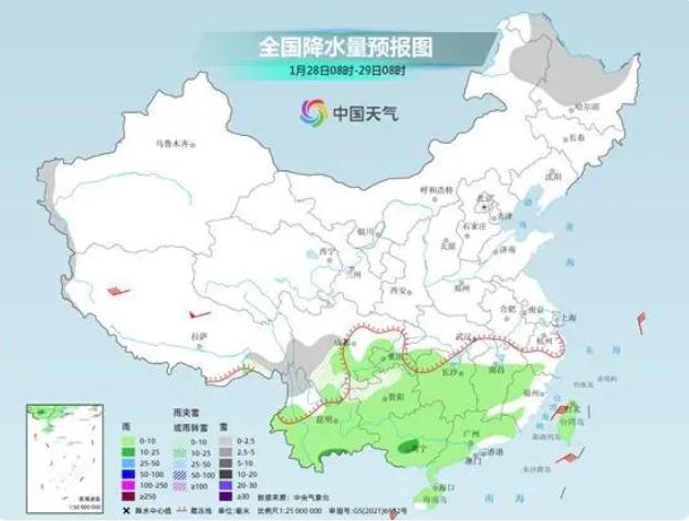 昨天,我國雨雪主要集中在西南地區等地。監測數據顯示,27日8時至28日6時,云南、貴州、華南等地出現小雨,云南東部、廣西、廣東部分地區中雨,云南曲靖、貴州中西部還出現了雨夾雪,而貴州畢節和黔西南局地更是遭遇了凍雨的天氣。