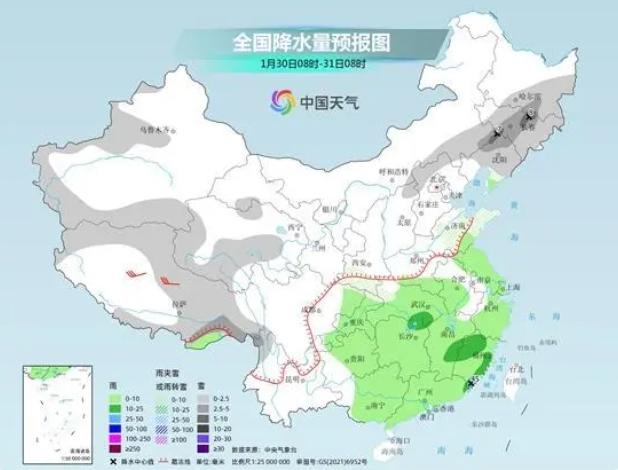 今天,南方降水范圍繼續向東擴展,明天將有更多地區被陰雨籠罩,其中,江南、華南等部分地區雨勢較強。具體來看,中央氣象臺預計,今天部分地區可能出現小雪或雨夾雪,而明天黑龍江東北部、新疆西部和南部、西藏北部和南部等地有望迎來小雪或雨夾雪,浙江南部、福建北部和西部、江西大部等地則有可能迎來中到大雨。