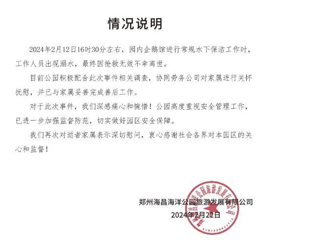 鄭州海昌海洋館潛水員溺亡事件引發(fā)了公眾對于景區(qū)安全監(jiān)管的關(guān)注。據(jù)報道,一名潛水員在企鵝池進行作業(yè)時不幸溺亡,事件曝光后引發(fā)了社會廣泛關(guān)注。