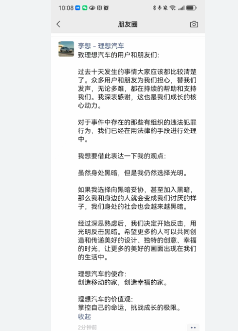 “過去十天發生的事情,大家應該都比較清楚了。眾多用戶和朋友為我們擔心,替我們發聲,無論多難,都在持續幫助和支持我們。我深表感謝,這也是我們成長的核心動力。”3月11日,理想汽車CEO李想在社交媒體上表示,“對于事件中存在的那些有組織的違法犯罪行為,我們已經在用法律的手段進行處理”。