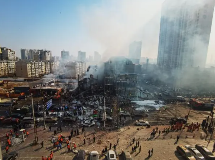3月13日,下午3時左右,河北燕郊爆炸現場仍在清理中,還有少量濃煙冒出。據三河市應急管理局通報,疑似一個炸雞店發生燃氣泄漏引發的爆炸事故,已經造成2人死亡、26人受傷。
