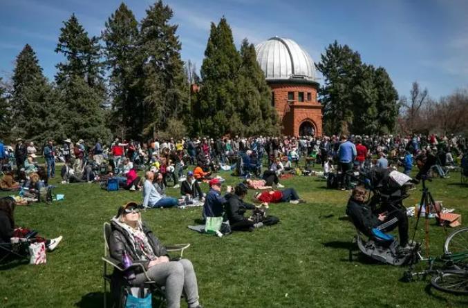 值得一提的是,日全食不僅吸引了當(dāng)?shù)孛癖?,還吸引了大批國際游客。例如,在佛蒙特州的伯靈頓市,市政停車場(chǎng)早早就被車輛填滿,而游客更是來自世界各地,甚至有人乘坐私人飛機(jī)前來觀賞。