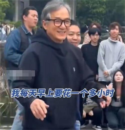 成龍先生親臨現場,一身輕松裝扮,70歲高齡卻依然神采奕奕、精神煥發。在與現場觀眾互動的過程中,他展現了非凡的幽默感,分享了自己日常生活中的趣事。其中,一個令人意想不到的小秘密引發了在場眾人的一片笑聲——為了保持滿頭銀絲的形象,他每天都要花費超過一個小時的時間來刷白頭發。