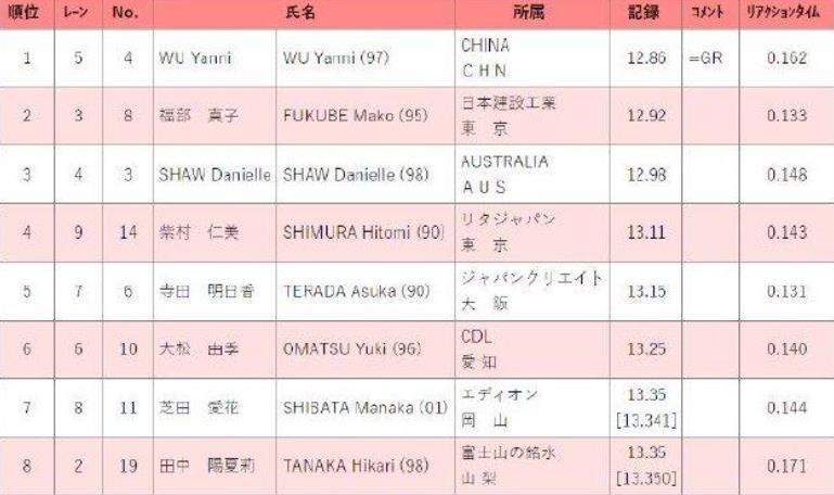 在決賽中,吳艷妮展現出了頑強的競技精神和過人的技術水平,以12秒86的成績奪得了冠軍,并追平了賽會紀錄。這次勝利不僅是對她個人實力的肯定,也為中國田徑再添一份光彩。