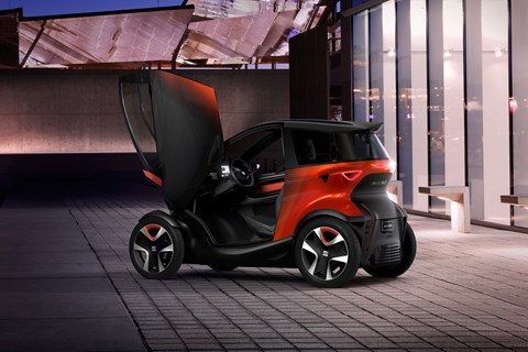 Seat Minimo電動吊艙可以徹底改變城市交通,這家西班牙汽車制造商的老板在日內瓦汽車展上發誓。Luca de Meo支持試驗租用小型電動車輛,每公里約20公頃(17便士) - 認為這比銷售Mii等現有城市車更有利可圖。