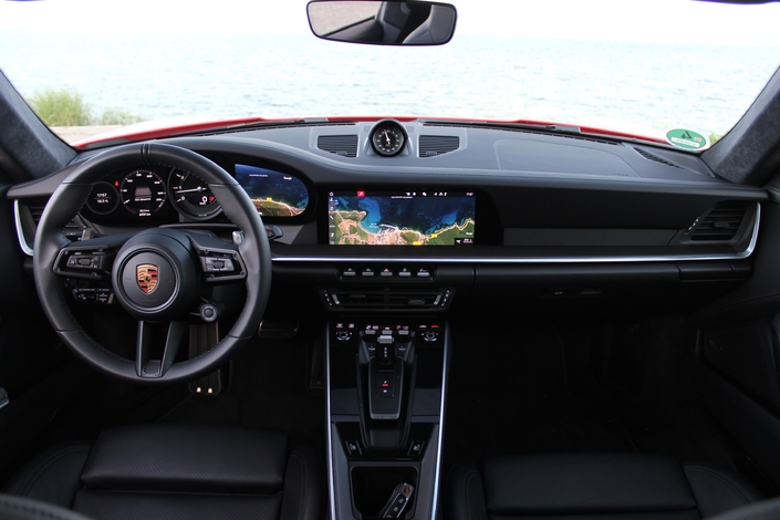 外部保守主義伴隨著內部的革命,大量使用數字。911上的第一個。第一個觸摸并從Panamera借來的多媒體屏幕,尺寸為10.9英寸,可以移除中控臺上的許多按鈕。這標志著按鈕/功能概念的終結,這是德國品牌的標志之一,但這一原則已經在制造商的其他型號上得到認可。