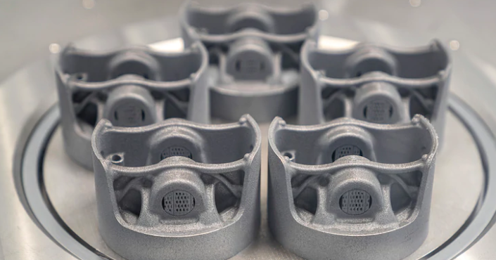 活塞以Mahle提供的鋁合金粉末開始。使用激光金屬熔合工藝,零件一次形成一層,在每次掃描激光之后,機器會添加更多的粉末(由德國制造專家Trumpf提供),每一次通過都會將新材料焊接到零件上。最終,從未使用的粉末堆中涌現出一組完全成型的活塞。然后將活塞送至Mahle進行最終加工,然后運至Zeiss進行微觀質量檢查。