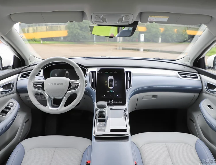 內飾上,新車中控臺設計采用橫向貫穿的平行線設計特征,搭載14.1英寸2.5D曲面大屏與12.3英寸全景AR模式虛擬儀表,后者可實現AR車道級實景導航,另外該車還運用了珠光皮料、精工金屬飾板等高級裝飾。