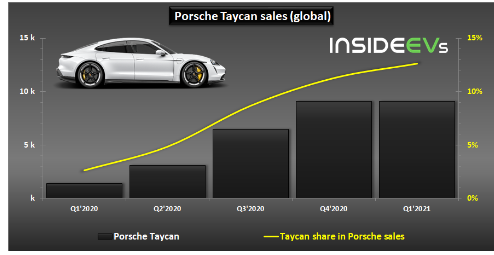 有趣的是,第一季度交易量僅比2020年第四季度(9.071)高出一個單位,這可能是Taycan的新穩定水平。時間將證明保時捷Taycan Cross Turismo是否會在此之上添加一些內容。Taycan每季度9,000個,每年為36,000個。