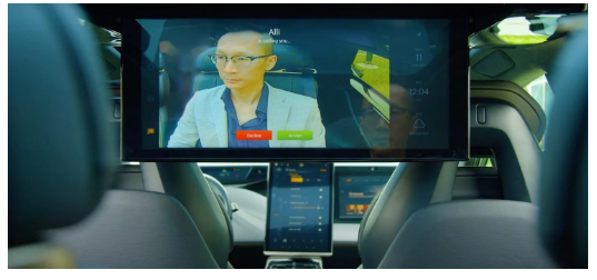 快速崛起的電動汽車制造商法拉第未來(Faraday Future)展示了27英寸后座屏幕,該屏幕在其FF91電動汽車上增加了視頻會議功能。電動汽車初創公司經歷了數年的動蕩,隨著其發展軌跡的不斷發展。
