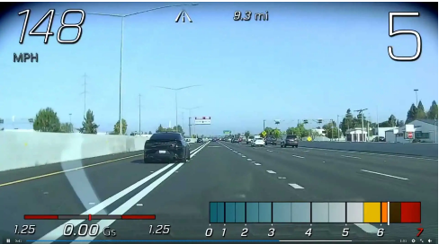 顯然,在經(jīng)銷商的照顧下,有人帶著 C8 兜風(fēng)了。通過兜風(fēng),我們的意思是在一條非常繁忙的高速公路上進(jìn)行一場(chǎng)瘋狂的街頭比賽,看到 Corvette以高達(dá) 148 MPH 的速度在車流中穿梭追逐道奇 Charger。多虧了清晰的視頻和谷歌地圖的魔力,我們看到這發(fā)生在弗里蒙特 880 號(hào)州際公路北的 13 號(hào)和 15 號(hào)出口之間。經(jīng)過兩英里的瘋狂之后,克爾維特在 15 號(hào)出口從 I-880 號(hào)出口潛水,而我們沒有知道那段高速公路上是否有任何攝像頭,那里有一個(gè)通常有警察在場(chǎng)的稱重站。
