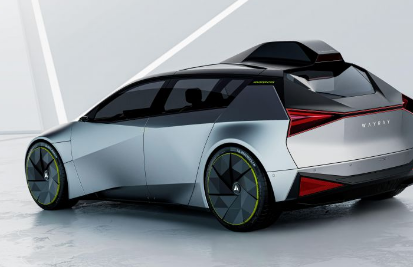 該概念車采用三角形空氣動力學設計和橙色重點線條的 22 英寸車輪,并包裹在米其林輪胎中。