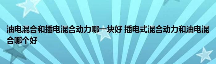 大家好,小態解答以上問題。油電混合和插電混合動力哪一塊好,插電式混合動力和油電混合哪個好這個很多人還不知道,現在讓我們一起來看看吧!