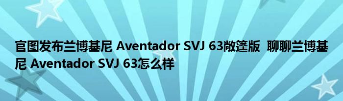 日前,蘭博基尼官方發布了Aventador SVJ 63 Roadster敞篷版圖。據悉,該車將會在圓石灘車展上正式亮相,限量發售63臺。
