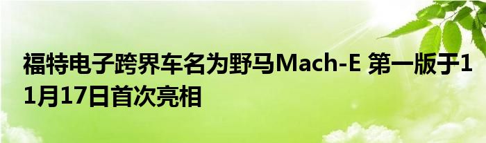 預定于11月17日在洛杉磯首映,與演員伊德里斯·厄爾巴(Idris Elba)一同登臺,《野馬Mach-E》將立即預訂。福特要求可退還的預訂押金為500美元,在第一例中,只有第一版可以配置和購買。