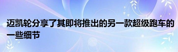 邁凱輪汽車首席執行官Mike Flewitt也在日內瓦車展新聞發布會上宣布,預計今年將公開展示這款車。